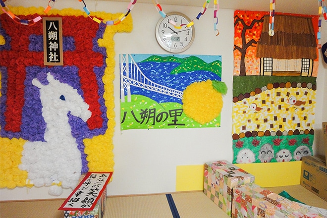 尾道市因島利用者様・ご家族様が安心して利用できる環境の中で、落ち着いて過ごせる居場所を提供し、その人らしい生活が送れるよう笑顔いっぱいのサービスを心がけます。リハビリ体操・レクレーション・転倒防止・認知症予防等の個別プログラムを効果的に取り入れます。